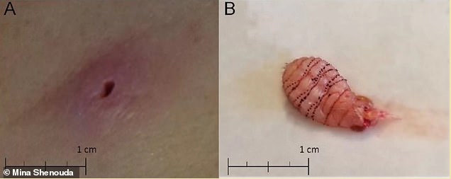 It was later confirmed to be a larva of the human botfly, scientifically known as the Dermatobia hominis - which is native to tropical America.